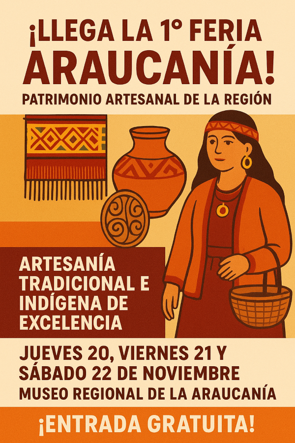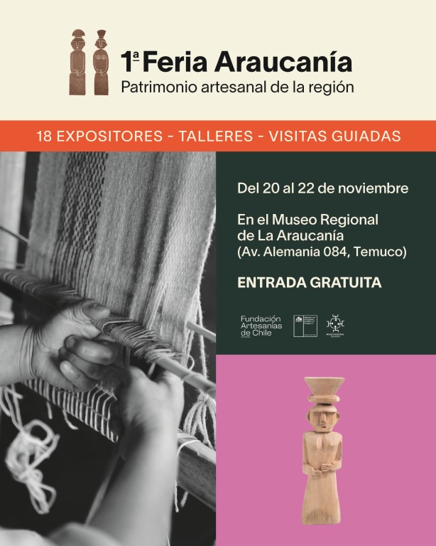 Este jueves 20, viernes 21 y sábado 22 de noviembre, la Fundación Artesanías de Chile celebrará por primera vez una feria dedicada exclusivamente a la artesanía tradicional e indígena, en el Museo Regional de La Araucanía.